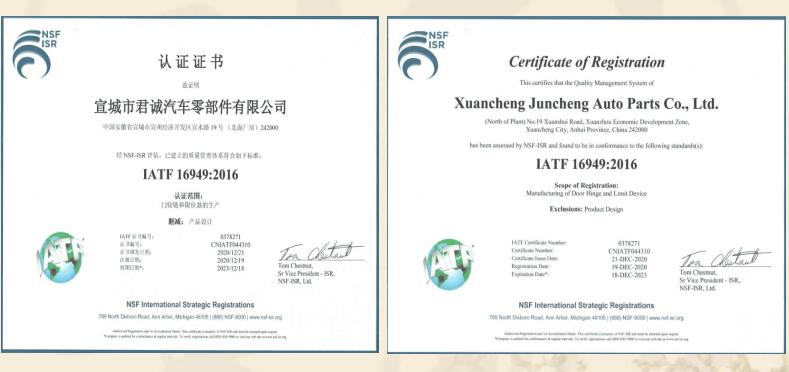 宣城市君誠汽車零部件有限公司是專業(yè)生產(chǎn)各類汽車鉸鏈及限位器的民營企業(yè),總投資3000余萬元,位于宣城高新技術(shù)產(chǎn)業(yè)開發(fā)區(qū),緊鄰宣廣、宣蕪高速公路,地理位置優(yōu)越,交通便捷。是“國家高新技術(shù)企業(yè)、知識產(chǎn)權(quán)貫標企業(yè)、安徽省商標示范企業(yè)、安徽省科技型企業(yè)”,已獲得國家發(fā)明專利18項,實用新型發(fā)明專利4項。主要從事各類汽車門鉸鏈及限位器的設(shè)計、研發(fā)、生產(chǎn)、和銷售,具有專業(yè)的合作團隊。自2015年正式生產(chǎn)至今,已形成一整套完整的生產(chǎn)、質(zhì)量管理體系。并已通過國家強制性產(chǎn)品認證“3C”體系認證及IATF16949國際質(zhì)量體系認證。在生產(chǎn)設(shè)備上,公司擁... 【查看詳細】